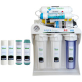 دستگاه دو گانه تصفیه آب آکوآ اسپرینگ مدل uf-sf3800 به همراه دستگاه تصفیه آب کد 01 بسته 4 عددی املاح، باکتریها، کلر را از آب میگیرد و درنتیجه آب آشامیدنیتان کاملاً پاکسازی میشود. از آنجایی که مصرف آب لولهکشی شهری، در دراز مدت باعث امراض مختلف در بدن انسان میشوند، هدف اصلی از تصفیه آب، جداسازی مواد مضر و بیماریزا، از آب و نیز از بین بردن بو و طعم نامطبوع آب است. آب غیراستاندارد در درازمدت میتواند باعث آسیب به کلیهها شود. برخی املاح در آب سرطانزا است. گر قصد دارید دستگاهی کامل تهیه کنید، این محصول مناسب شما است. دستگاه تصفیه آب آکوآ اسپرینگ برای تصفیه آب از روش اسمز معکوس و فیلتر ممبران استفاده میکند. فیلتر ممبران این دستگاه فیلمتک آمریکایی است و کیفیت بسیار بالایی دارد. به دلیل اهمیت بالای فیلتر ممبران، برای محافظت بهتر از آن فیلتر محافظ ممبران بر روی دستگاه نصب شده است. همچنین برای تصفیه بهتر آب، این محصول دارای فیلتر نانوگیاهی است. این فیلتر میتواند میکروبها و باکتریهای موجود در آب را حذف کند. دستگاه فوق از مخزن آنتی باکتریال 16 لیتری و مگابوستر پمپ قوی 125 PSI و شیر اهرمی ممبران برخوردار است. خلاصهی عملکرد فیلترهای این دستگاه بهاینصورت است که در سه مرحله اول تمام املاح معلق و مضر، کلر، آفتکشها و تریهالومتانها را از آب گرفته و در مرحله بعد نیترات، نیتریت، آرسنیک و میکروارگانیسمهای شیمیایی و فلزات سنگین (تمام املاح سرطانزا) را بهطور کامل از آب خارج میکند. این محصول دارای استانداردهای بینالمللی از جمله WATER QUALITY ،FDA ،ISO ،NSF وCE و نشان کمیتوسلامت محصولات اروپا است. دستگاه تصفیه آب خانگی مدل UF-SF3800 را در دستهی سلامت محیط در دیجیکالا تهیه نمایید.