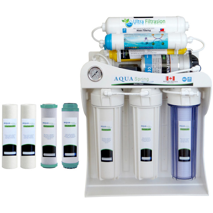 دستگاه دو گانه تصفیه کننده آب آکوآ اسپرینگ مدل UF-SF3800 به همراه فیلتر دستگاه تصفیه آب کد 01 بسته 4 عددی