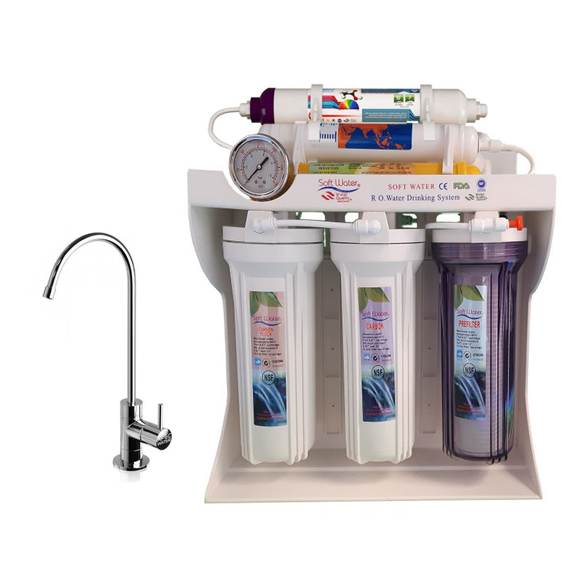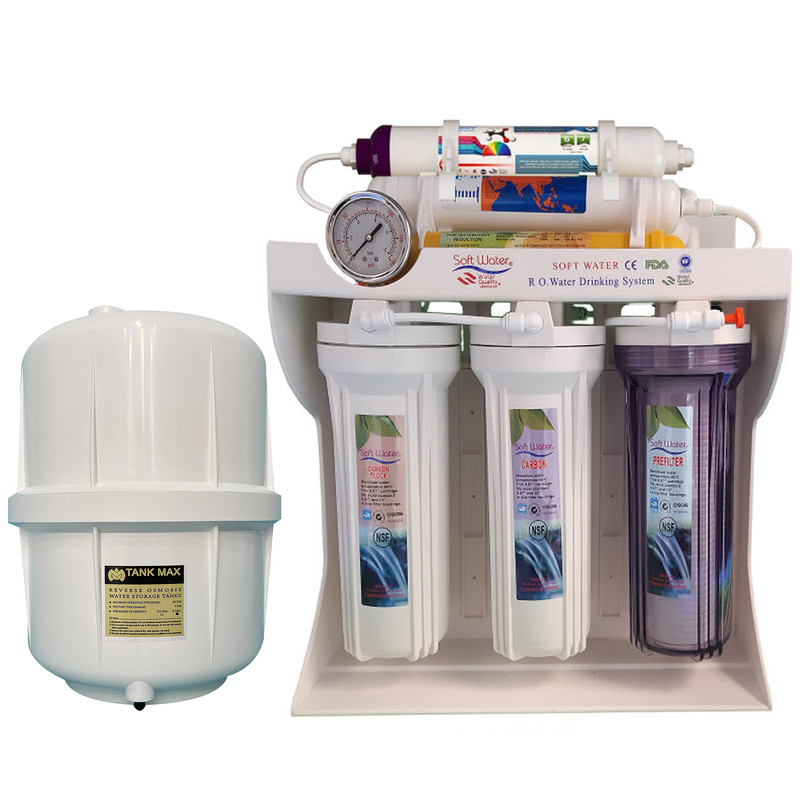 + موارد بیشتردستگاهی که علاوه بر تولید آب مصرفی ، قابلیت اتصال به همه نوع یخچال و فریزر را نیز دارد . دستگاه تصفیه آب 7مرحله ای معدنی ساز سافت واتر مدل hajibashi-x700 با اتصالات و قطعات تایوانی در مجموعه بازرگانی حاجی باشی مونتاژ شده است ، این دستگاه توسط فرایند اسمز معکوس (Reverse Osmosis System) ، می تواند هر آبی را به آب تصفیه شده ، بهداشتی و قابل شرب برای انسان با تمام استداندارد های بین المللی تبدیل کند. بزرگترین امتیاز این مدل از دستگاه تصفیه آب سافت واتر ، عدم احتیاج به حضور تکنسین جهت تعویض فیلتر ها بذلیل استاندارد بودن نوع فیلتر های آن می باشد و کلیه فیلتر های دستگاه از برترین کیفت ساخته شده است ، بنابراین این موضوع تاثیر چشمگیری در کاهش هزینه های نگهداری از دستگاه خواهد شد. از قابلیت های این دستگاه می توان به حذف کامل جرم کتری که مشکل عدیده مردم می باشد ، حذف شن ، ماسه ، گل و لای ، کلر ، ترکیبات آلی ، رنگ ، بو ، طعم ، نیترات ، نیتریت ، آرسنیک ، کبالت ، جیوه ، سرب ، فلزات سنگین اشاره نمود. یکی از مهمترین نکات در انتخاب یک دستگاه تصفیه آب کارآمد و بهداشتی ، انتخاب دستگاهی است که تمام اجزا و قطعات آن قابل استفاده جهت تولید آب بهداشتی برای مصرف انسان باشد ، اگر قسمتی از اجزا دستگاه تصفیه آب فاقد استاندارد های بهداشتی جهت استفاده انسان باشد ، این موضوع می تواند باعث اضافه شدن مواد سمی به آب تولید شده توسط دستگاه شود ، بنابراین انتخاب در امر خرید یک دستگاه تصفیه آب استاندارد ، مهمترین گام در بهره مندی از آبی بهداشتی و گوارا است. این دستگاه دارای تاییدیه های NSF و Water Quality Association می باشد. اقلامی که داخل جعبه اسن دستگاه تصفیه آب می باشد : یک دستگاه تصفیه آب 7 مرحله ای سافت واتر مدل hajibashi-x700 ، مخزن ذخیره آب تحت فشار با حجم 4 گالن که معادل حدود 16 لیتر است ، شیر برداشت استیل اهرمی آب (ویژه نصب روی سینک ظرفشویی) و پکینگ نصب کامل دستگاه که شامل ، آچار مخصوص تعویض فیلتر ها و شیلنگ نصب جهت شیلنگ کشی بین مخزن و دستگاه و شیر مصرف و …. ، شیر مخزن ، شیر رو سینکی استیل اهرمی ، سه راهی اتصال شیر پیسوار به شیر ورودی ، شیر وروردی آب شهری به دستگاه ، کمربند فاضلاب جهت اتصال پساب به لوله فاضلاب است.