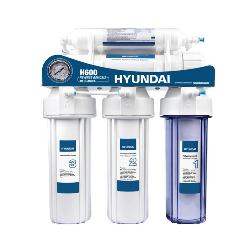 دستگاه تصفیه آب هیوندای H600 با حذف تمامی املاح مضر در آب ، حذف شن ، ماسه ، گل و لای ، کلر ، ترکیبات آلی ، رنگ ، بو ، طعم ، نیترات ، نیتریت ، آرسنیک ، کبالت ، جیوه ، سرب ، فلزات سنگین و...آبی سالم،پاک،بهداشتی و کاملا تصفیه شده برای شما تهیه میکند و همان چیزیست که شما در سراسر کشور برای سلامتی خود نیاز دارید...