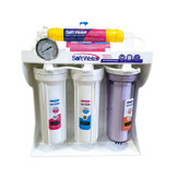 دستگاه تصفیه آب 6 مرحله ای و معدنی ساز سافت واتر مدل RO6-Softwater با اتصالات و قطعات تایوانی مونتاژ شده است ، این دستگاه توسط فرایند اسمز معکوس (Reverse Osmosis System) ، می تواند هر آبی را به آب تصفیه شده ، بهداشتی و قابل شرب برای انسان با تمام استداندارد های بین المللی تبدیل کند. بزرگترین امتیاز این مدل از دستگاه تصفیه آب سافت واتر ، عدم احتیاج به حضور تکنسین جهت تعویض فیلتر ها بذلیل استاندارد بودن نوع فیلتر های آن می باشد و کلیه فیلتر های دستگاه از برترین کیفت ساخته شده است ، بنابراین این موضوع تاثیر چشمگیری در کاهش هزینه های نگهداری از دستگاه خواهد شد. از قابلیت های این دستگاه می توان به حذف کامل جرم کتری که مشکل عدیده مردم می باشد ، حذف شن ، ماسه ، گل و لای ، کلر ، ترکیبات آلی ، رنگ ، بو ، طعم ، نیترات ، نیتریت ، آرسنیک ، کبالت ، جیوه ، سرب ، فلزات سنگین اشاره نمود. یکی از مهمترین نکات در انتخاب یک دستگاه تصفیه آب کارآمد و بهداشتی ، انتخاب دستگاهی است که تمام اجزا و قطعات آن قابل استفاده جهت تولید آب بهداشتی برای مصرف انسان باشد ، اگر قسمتی از اجزا دستگاه تصفیه آب فاقد استاندارد های بهداشتی جهت استفاده انسان باشد ، این موضوع می تواند باعث اضافه شدن مواد سمی به آب تولید شده توسط دستگاه شود ، بنابراین انتخاب در امر خرید یک دستگاه تصفیه آب استاندارد ، مهمترین گام در بهره مندی از آبی بهداشتی و گوارا است. این دستگاه دارای تاییدیه های NSF و Water Quality Association می باشد. اقلامی که داخل جعبه اسن دستگاه تصفیه آب می باشد .مخزن ذخیره آب تحت فشار با حجم حدود 10 لیتر است ، شیر برداشت استیل اهرمی آب (ویژه نصب روی سینک ظرفشویی) و پکینگ نصب کامل دستگاه که شامل ، آچار مخصوص تعویض فیلتر ها و شیلنگ نصب جهت شیلنگ کشی بین مخزن و دستگاه و شیر مصرف و …. ، شیر مخزن ، شیر رو سینکی استیل اهرمی ، سه راهی اتصال شیر پیسوار به شیر ورودی ، شیر وروردی آب شهری به دستگاه ، کمربند فاضلاب جهت اتصال پساب به لوله فاضلاب است.
