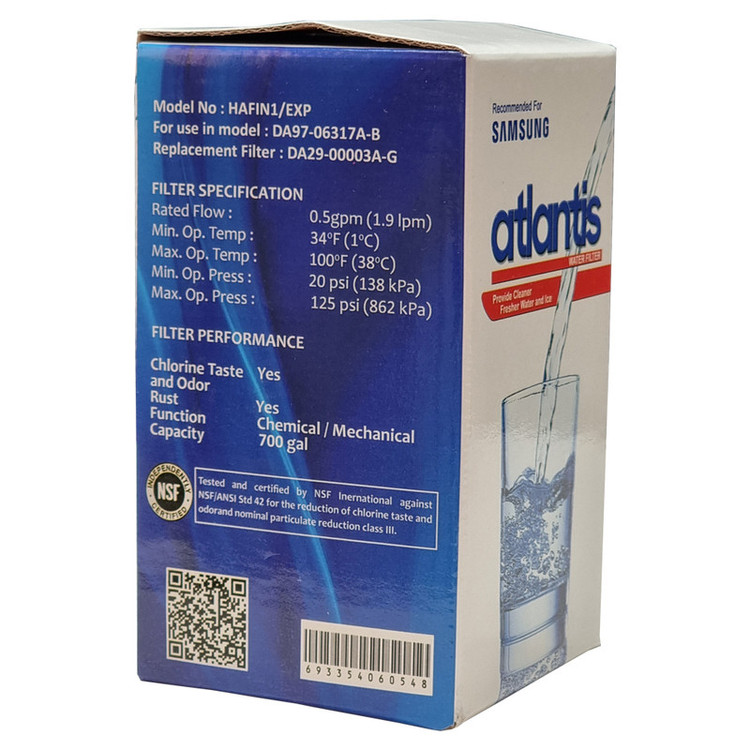 امروزه با پایین آمدن کیفیت آبها در جوامع شهری و بخصوص در کلان شهرها و همچنین برای بازدهی بالاتر دستگاهها و همچنین استفاده از آب مطلوب جهت آشامیدن از انواع مختلف فیلتر و روش تصفیه آب استفاده میگردد که یکی از رایج ترین ترین دستگاهها یخچالهای مجهز به آبسردکن و یخساز میباشد . در این یخچالها از یک فیلتر یا چند فیلتر ( معمولا 1 فیلتر ) جهت بالابردن کیفیت آب و همچنین محافظت از سیستم داخلی در مقابل رسوب استفاده میشود. فیلتر لیوانی ( داخلی ) یخچال ساید بای ساید سامسونگ برند آتلانتیس مناسب برای تمامی یخچال های سامسونگ می باشد . این فیلترها دارای عمر مفید 12 ماه می باشد و ظرفیت تصفیه 500 گالن آب دارد و ساخت ایران ولی با کربن اکتیو وارداتی استفاده شده بدون شک جزء با کیفیت ترین و البته پرفروش ترین فیلترها یخچال می باشد. نکته مهم : حتما فیلترها را در زمان مقرر شده تعویض نمایید چرا که مواد داخلی آنها اشباع شده و عملا دیگر کار تصفیه را انجام نمی دهند و همچنین با گذشت زمان زیاد، مواد داخلی فاسد شده و باعث رشد باکتری ها میشوند و بسیار دیده شده که فیلترها بعد از گذشت زمان زیاد کیپ شده و آب را به سختی از خود عبور میدهند .