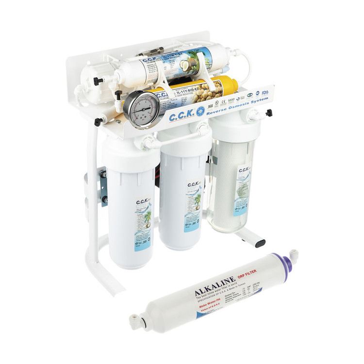 یکی از مطرحترین برندها در زمینه تولید دستگاه تصفیه آب، سیسیکا یا همان C.C.K است. دستگاه تصفیهکننده آب سی سی کا مدل A7 دستگاه 7 مرحلهای این برند است. سیستم فیلتراسیون استفاده شده برای این دستگاه اسمز معکوس است. اسمز معکوس (REVERSE OSMOSIS) یا شیرینکنندهی آب روش جهت جداسازی ناخالصیهای مضر و میکروارگانیسمها است. استفاده از دستگاه 7 مرحلهای تضمینی بر بالا رفتن کیفیت آب آشامیدنیتان است. در این 7 مرحله، فیلترها مواد مضر و اضافی را از آب میگیرند. در نگاه اول مشخصترین شاخصه آب پس از عبور از این دستگاه شفافیت آب، مزه و بوی آن باشد. فیلترهای این دستگاه تصفیه کننده مزه و بوی اضافی آب را از بین میبرد و نوشیدن آب برایتان دلپذیرتر میشود. دستگاه تصفیهکننده آب سی سی کا مدل A7 هفت مرحلهای است. این بدین معناست که این دستگاه 7 فیلتر دارد. فیلترهایی که برای این مدل در نظر گرفته شده فیلترهای استاندارد برای یک دستگاه تصفیه کننده با کیفیت هستند. این مدل موفق به کسب استانداردهایی نظیر، SGS، CE، SASO، Water Quality، NSF، FDA شده است. این مدل علاوه بر فیلترهای استاندارد، به فیلتر آلکالین هم مجهز شده است.