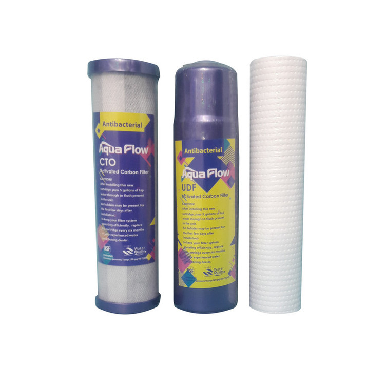 برند AQUA FLOW همواره محصولات خود را با کیفیت بسیار بالایی به بازار عرضه می نماید. فیلتر الیافی دارای وزن مناسب و دقت بسیار خوب 5 میکرون می باشد. فیلتر مرحله دوم یا UDF نیز کاملا گیاهی و وارداتی از کشور تایوان می باشد و کربن بکار رفته درون آن دارای کیفیت بسیار بالا با واکنش پذیری عالی بخوبی طعم و بوی آب را اصلاح می کند و وظایف خود را بخوبی انجام می دهد . فیلتر مرحله سوم یا CTO که بر روی فیلتر MADE IN TAIWAN نیز حک شده وظیفه تکمیلی برای فیلتر دوم را دارد و همچنین باید از ورود ذرات ریز کربن فیلتر دوم به ممبران جلوگیری کند . این فیلتر نیز کاملا گیاهی و با بالاترین کیفیت تهیه شده است . این مجموعه فیلتر را می توان یک مجموعه قدرتمند به شمار آورد و اگر به دنبال فیلتر کاملا مناسب و قدرتمند هستید ، این مجموعه فیلتر بسیار عالی و یکی از بهترین انتخاب ها می باشد.