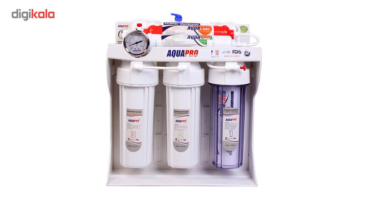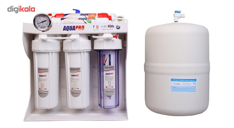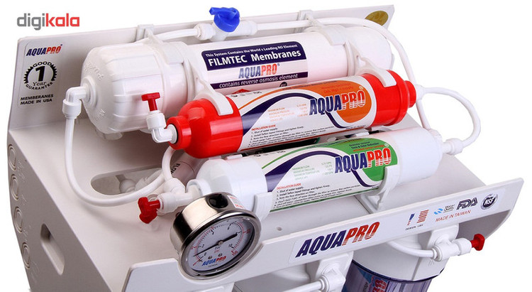 دستگاه تصفیه کننده آب آکواپرو با شاسی فایبرگلاس با فناوری اسمز معکوس RO با فیلتر ممبران 13 لایه آمریکا(با دوام بالا) و فیلتر مینرال MINERAL برند آکوا پرو AQUA PRO ساخت کشور تایوان _ تحت لیسانس آمریکا در طی شش مرحله توسط 6 فیلتر آب را تصفیه میکند _ مخزن 4 گالن _ گیج فشار بزرگ _ با بوستر پمپ قوی 125psiهوزینگ های دوبل اورینگ که باعث میشود بسیار از لحاظ آب بندی عالی باشد همراه با شیر برداشت اهرمی قدرت پایین آوردن سختی (TDS) آب و همچنین تنظیم PH آب و از بین بردن فلزات سنگین نیترات و نیتریت و حذف کلیه ناخالصی های آب تا 0/0001 میکرون قابلیت نصب به ساید و قابل جابجایی آسان _ دارای استاندارد های جهانی FDA، WATER QUALITY، CE، NSFدستگاه در زیر سینک آشپزخانه نصب میشود و نصف کمتر کابینت زیر سینک را فضا اشغال میکند1 سال گارانتی طلایی + خدمات پس از فروش مادام العمر + نصب رایگان در تهران + تست آب تصفیه شده بعد از نصب