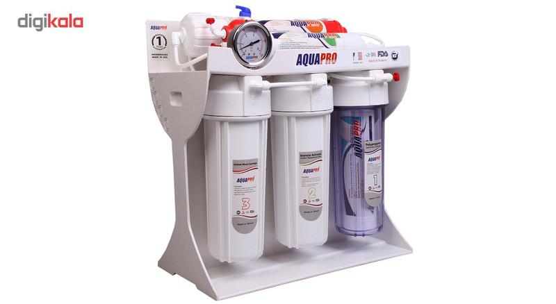 دستگاه تصفیه کننده آب آکواپرو با شاسی فایبرگلاس با فناوری اسمز معکوس RO با فیلتر ممبران 13 لایه آمریکا(با دوام بالا) و فیلتر مینرال MINERAL برند آکوا پرو AQUA PRO ساخت کشور تایوان _ تحت لیسانس آمریکا در طی شش مرحله توسط 6 فیلتر آب را تصفیه میکند _ مخزن 4 گالن _ گیج فشار بزرگ _ با بوستر پمپ قوی 125psiهوزینگ های دوبل اورینگ که باعث میشود بسیار از لحاظ آب بندی عالی باشد همراه با شیر برداشت اهرمی قدرت پایین آوردن سختی (TDS) آب و همچنین تنظیم PH آب و از بین بردن فلزات سنگین نیترات و نیتریت و حذف کلیه ناخالصی های آب تا 0/0001 میکرون قابلیت نصب به ساید و قابل جابجایی آسان _ دارای استاندارد های جهانی FDA، WATER QUALITY، CE، NSFدستگاه در زیر سینک آشپزخانه نصب میشود و نصف کمتر کابینت زیر سینک را فضا اشغال میکند1 سال گارانتی طلایی + خدمات پس از فروش مادام العمر + نصب رایگان در تهران + تست آب تصفیه شده بعد از نصب