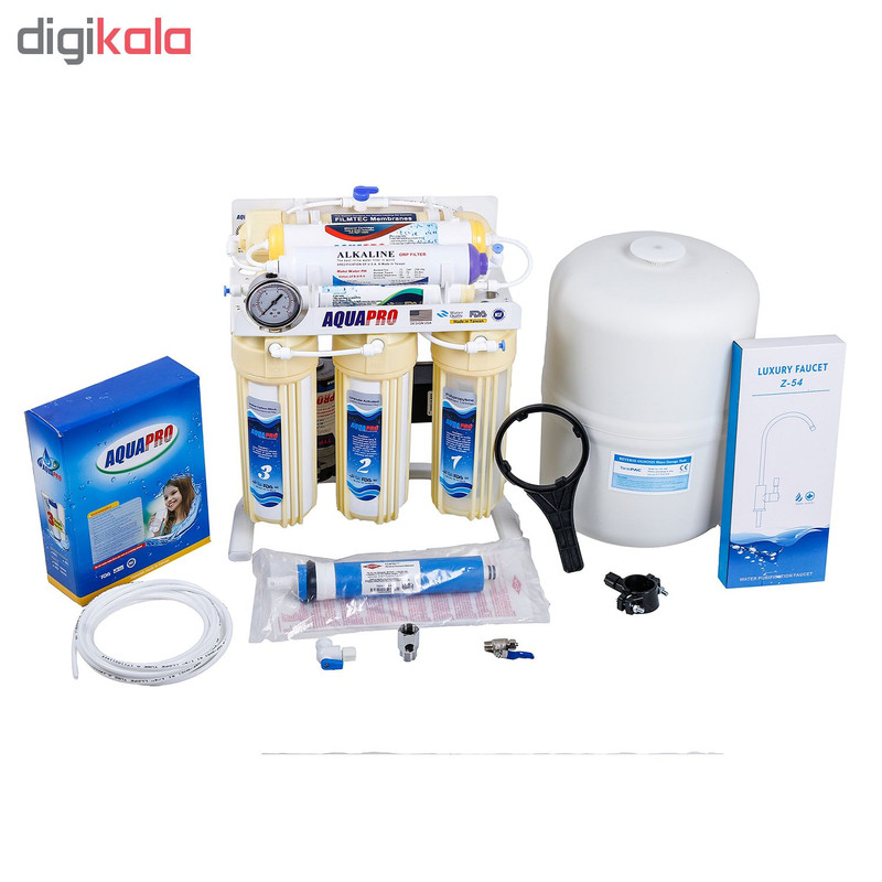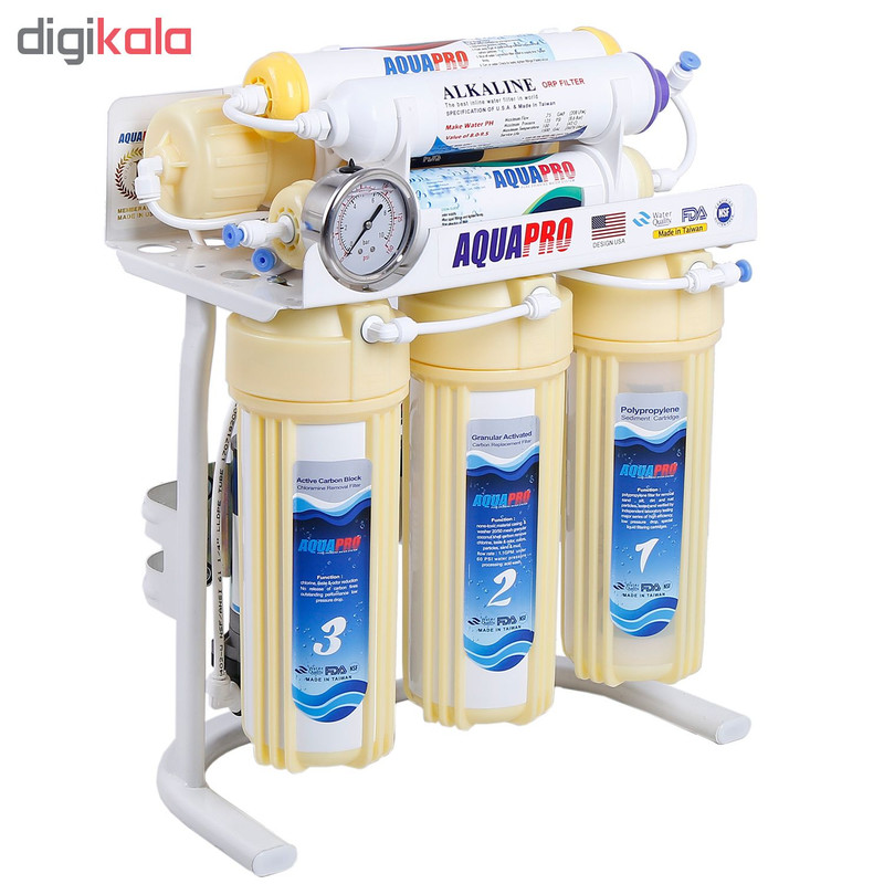 تصفیه آب خانگی قلیایی آکوا پرو با استفاده از تکنولوژی اسمز معکوس و فیلتر قلیایی یک تصفیه کامل را برای شما انجام میدهد، مدل RO7_Y در دستگاههای تصفیه آب خانگی آکوا پرو AQUA PRO جزو بهترین آب تصفیه کن های خانگی به حساب می آید تصفیه آب را طی هفت مرحله و هفت فیلتر مجزا انجام میدهد و فیلتر آخر قلیایی کننده آب با کیفیت برتر دارای تاییدیه FDA که خواص آنتی اکسیدانی (ضد سرطانی) و قلیایی کردن آب را سبب میشود، فیلتر چهارم ممبران 13 لایه با عمر طولانی (بهترین نوع فیلتر ممبران) میباشد که قابلیت حذف تمامی آلودگی ها تا 0/0001 میکرون دارد، مخزن 4 گالن (16 لیتری) آنتی باکتریال دارد و هوزینگ های دستگاه دابل اورینگ است برای آب بندی بهتر و همراه با شیر اهرمی شیک میباشد که برای برداشت آب تصفیه از دستگاه است، نکته قابل توجه هم این است که قابلیت نصب به ساید دارد و همچنین جابجایی آسان از مزایای این دستگاه هست وکلیه استاندارد های معتبر را دارد مثل FDA_WQ_CE_NSF و توان تولید آب تصفیه شده در 24 ساعت 220 لیتر دارد، دارای بوستر پمپ قوی 125psi بدون صدا و لرزش، با برق 24 ولت، مجهز به شیر تنظیم املاح است و قدرت حذف نیترات و نیتریت آب را هم دارد، این دستگاه قابلیت آب را هم شیرین میکند یعنی در مناطقی که مشکل شوری آب دارند قدرت شیرین کردن آب را داراست، دستگاه در زیر سینک آشپزخانه نصب میشود و نصف کمتر کابینت زیر سینک را فضا اشغال میکند، این دستگاه ترانس قدرت تنظیم TDS آب را داردهم دارد و کیفیت قطعات و فیلترهای این مدل دستگاه آکواپرو فوق العاده بالا است و آبی حتی بهتر از آب معدنی را در اختیار شما خواهد گذاشت