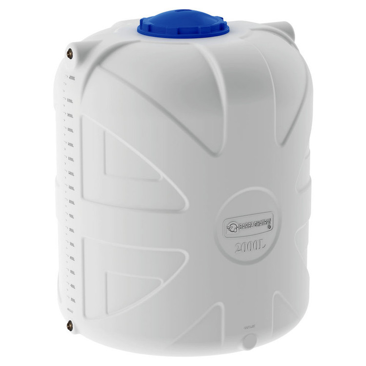 مخزن پلی اتیلن 2000 لیتری عمودی بارز قطران سه لایه و ضد جلبک می باشد. این مخزن مناسب برای نگهداری آب، مواد خوراکی،سوخت و مایعات شیمیایی می باشد. این مخزن از مواد اولیه درجه یک ساخته شده است،مقاومت مکانیکی بالایی دارد و امکان بهره برداری در دمای -30 تا +60 درجه سانتیگراد را دارد. قطر مخزن 135 و ارتفاع آن 165سانتیمتر می باشد. برای این مدل فیتینگ ورودی و خروجی 3/4*1 اینچ تعبیه شده است.