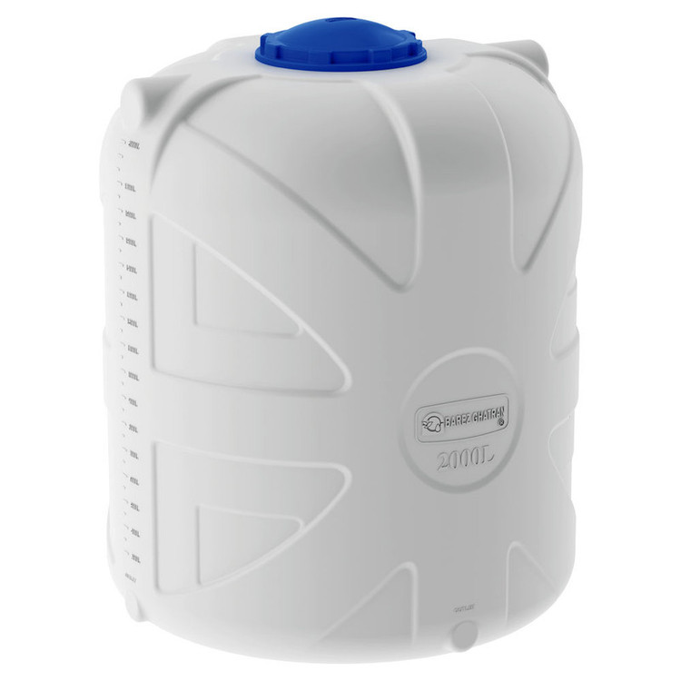 مخزن پلی اتیلن 2000 لیتری عمودی بارز قطران سه لایه و ضد جلبک می باشد. این مخزن مناسب برای نگهداری آب، مواد خوراکی،سوخت و مایعات شیمیایی می باشد. این مخزن از مواد اولیه درجه یک ساخته شده است،مقاومت مکانیکی بالایی دارد و امکان بهره برداری در دمای -30 تا +60 درجه سانتیگراد را دارد. قطر مخزن 135 و ارتفاع آن 165 سانتیمتر می باشد.