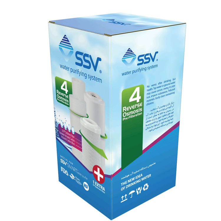پک فیلتر PCC متشکل از 4 نوع فیلتر حیاتی و پرکاربرد دستگاه تصفیه که شامل 2 عدد فیلتر P.P شماره یک که قابلیت حذف تمامی ذرات معلق با دقت 1 میکرون، کدری آب، تخم انگل ها، لارو، قارچ ها و … را دارد. با توجه به کارشناسی های بعمل آمده توسط شرکت S.S.V عمر بالاتر برای این فیلتر ممکن است باعث کاهش عملکرد این فیلتر گردد. بنابراین بهتر است هر 3 ماه یک بار این فیلتر تعویض شود. فیلتر بعدی فیلتر کربن اکتیو تمام گیاهی فیلتری است که جهت تکمیل فرآیند پیش تصفیه به عنوان فیلتر شماره 2 مورد استفاده قرار می گیرد.کربن بهترین جذب کننده ای است که بشر تاکنون شناخته است. کربن اکتیو با توجه به بار مثبت خود قابلیت جذب بیش از هزار ماده شیمیایی و آلاینده با بار منفی نظیر کلرین، ارسنیک، مواد آلی فرار و مواد شیمیایی سرطان زا را داراست و در نهایت فیلتر کربن بلاک پایه گیاهی است که جهت تکمیل فرآیند حذف آلاینده های کربنی باقی مانده از فیلتر دوم مورد استفاده قرار میگیرد. این 4 عدد فیلتر برای یک دوره شش ماه کافی است .
