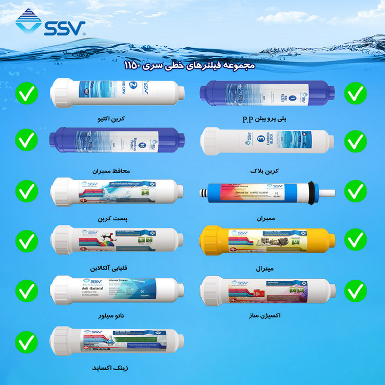 فیلتر دستگاه تصفیه آب اس اس وی مدل اینلاین L1150 بسته 11 عددی